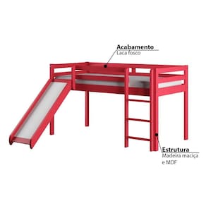 Cama Alta Kids com Escorregador em Madeira Maciça - Vermelho