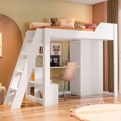 A Cama Office Vivace é a solução ideal para quem busca funcionalidade e design inteligente em um só móvel. Pensada especialmente para ambientes infantis e juvenis, ela combina conforto, organização e praticidade em um layout moderno e compacto. Com escrivaninha integrada e nichos organizadores, a Cama Vivace cria um espaço de estudos funcional, perfeito para incentivar a concentração e a criatividade no dia a dia. Seu roupeiro com 2 portas conta com cabideiro interno e puxadores em MDF, proporcionando armazenamento eficiente com um toque de sofisticação. Fabricada com estrutura em MDP de 1,5 cm, a Cama Office Vivace oferece resistência e durabilidade, com acabamento de qualidade que remete à marcenaria, unindo beleza e robustez em cada detalhe. Acabamento da Porta: Melamínico Acabamento da Prateleira: Melamínico Acabamento dos Pés: BP Acompanha Cama Auxiliar: Não Acompanha Colchão: Não Altura do Estrado até o Chão: 136,5 cm Altura dos Pés: 1,5 cm Altura Máxima dos Pés: 1.5000 Ambiente Principal: Quarto Infantil codigo_ean: 7900288196736 Complexidade da Montagem: Alta: deve ser montado por um montador especializado Cor: Branco Cor do Produto: Branco Cor Flex: Não Escala de Brilho: Semi-Brilho Escala de Brilho da Porta: Semi-Brilho Escala de Brilho da Prateleira: Semi-Brilho Extensível: Não Informações Complementares: - Fazer uma verificação mensal e realizar o reaperto dos parafusos do produto, caso necessário. - Proibido pular sobre as camas. - O produto destina-se ao uso de uma pessoa por cama sempre. O produto jamais deverá ser utilizado por mais de uma pessoa por cama Itens Inclusos: 1 Cama, Kit Ferragens e Manual de Montagem Linha ou Coleção: Vivace Manual de Montagem e Instalação: https://product-hub-prd.madeiramadeira.com.br/311400213/documents/de3c13b6-c462-4a60-921d-209539bded9e3080925390317528563293062.pdf Marca: DRD Móveis Material da Porta: MDP Material da Prateleira: MDP Material do Estrado: Madeira Multilaminada Material do Puxador da Porta: MDF Material dos Pés: Plástico Material Principal: MDP modular: Não Montagem Flex: Não Necessita Montagem: Sim Origem do Produto: Nacional Permite a Utilização de Cama Auxiliar: Não Peso: 104,5 kg Peso Máximo por Prateleira: 3 kg Possui Baú: Não Possui Casinha: Não Possui Escrivaninha: Sim Possui Estante: Sim Possui Gavetas: Não Possui iluminação: Não Possui Pés: 04 Possui Rodízio: Não Possui Telhado: Não Recomendações de Uso, Manutenção e Limpeza: Limpar com pano umedecido, sem adição de produtos químicos. Sapatas Niveladoras: Não Sistema de Montagem: Profissional Qualificado Suporta Até (kg): 200 kg Tamanho da Cama: Solteiro Tamanho do Colchão Indicado (L x C): 88 x 188 cm Tipo de Cama: Cama Alta Tipo de Colchão: Solteiro Tipo de Dobradiça/Corrediça da Porta: Metálica Tipo de Estrado: Fixo Tipo de Porta: Bater Tipo de Puxador da Porta: Externo Marca: Não Informado