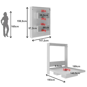 Altura: 198,5cm | Largura: 147,2cm | Profundidade: 57,2cm (fechada) - 193cm (aberta)