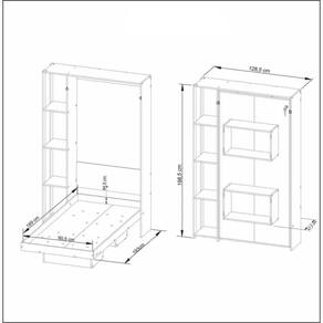 Altura: 198,5cm | Largura: 128,5cm | Profundidade: 57,2cm (fechada) - 193cm (aberta)