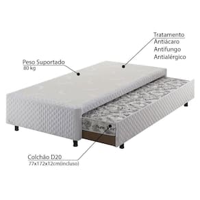 - Colchão D20 para cama Auxiliar 77x172x12cm (incluso).