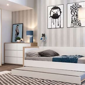 que tal a cama auxiliar wood? se a família aumentou ou seu filho chegou na fase de receber visitas, conte coama auxiliar wood para oferecer um leito extra no quarto, estruturada em materiais resistentes, ela confere toda a segurança necessária às noites de sono, assim todo mundo poderá relaxar depois de um dia de brincadeiras. além da usabilidade, a cor branca torna fácil combiná-la com a decoração ou ir mudando a decoração do quarto de acordo com o crescimento do dono do pedaço. ah, por falar nisso, ela se encaixa perfeitamente na cama principal da mesma linha, mas, se você já tiver outra, lembra de conferir as medidas, certo? ;) Marca: Modern