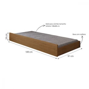 Características: - Estrutura 100 MDF de 15mm - com colchão de 88x188 cm -NÃO INCLUSO- - 4 Rodízios de plástico - Ripas em Pinus - Acabamento/Pintura UV Semi brilho - Suporta de peso 70 kg - Garantia de 3 meses
