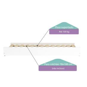 A Casatema é uma loja especializada em Móveis infantis no conceito lúdico, onde a diversão e segurança fazem parte do design de cada peça. Todo o processo de construção de nossos móveis é baseado nas experiências de nossas crianças, o que torna nossos produtos inovadores no mercado! A Cama Auxiliar Prime II é perfeita quando aquele amiguinho resolveu ficar de última hora. Produzida em madeira maciça/MDF e o acabamento é com pintura em laca branco, garantindo maior durabilidade ao produto. Conta com 2 rodízios para melhor movimentação e 2 pés para a cama fixar melhor no local desejado. Esta cama serve em qualquer modelo de Cama Prime e nos Beliches Teen Play da Casatema. Acompanha Cama Auxiliar: Não Acompanha Colchão: Não Ambiente Principal: Quarto Infantil Complexidade da Montagem: Alta: deve ser montado por um montador especializado Cor: Branco Cor do Produto: Branco Escala de Brilho: Semi-Brilho Itens Inclusos: 1 Cama, Kit Ferragens e Manual de Montagem Linha ou Coleção: Prime II Manual de Montagem e Instalação: https://cdn2.madeiramadeira.com.br/atributo/incobemax/1230474-7908308738058-7908308738065.pdf Material do Estrado: Madeira Material Principal: Madeira Maciça Necessita Montagem: Sim Origem do Produto: Nacional Permite a Utilização de Cama Auxiliar: Não Peso: 13 Possui Baú: Não Possui Gavetas: Não Possui Pés: Não Possui Portas: Não Possui Prateleiras: Não Possui Rodízio: Sim Recomendações de Uso, Manutenção e Limpeza: Na limpeza não utilizar produtos químicos e abrasivos, usar apenas um pano umedecido, para garantir a maior durabilidade do móvel. Rodízio com Trava: Não Sapatas Niveladoras: Não Sistema de Montagem: Parafusos e Cavilhas Suporta Até (kg): 100 Tamanho do Colchão Indicado (L x C): 78cm x 188cm Tipo de Cama: Auxiliar Tipo de Colchão: Solteiro Tipo de Estrado: Fixo Tipo de Madeira Maciça: Pinus