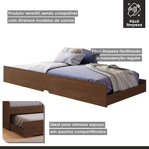 O tamanho do colchão indicado é o de solteiro padrão, o que proporciona encaixe perfeito e conforto para dormir. Acompanha Cama Auxiliar: Não Acompanha Colchão: Não Acompanha Dossel: Não Acompanha Suporte para Mosquiteiro: Não Altura do Estrado até o Chão: 19 cm Ambiente Principal: Quarto Complexidade da Montagem: Média: pode ser montado por mais de uma pessoa e/ou necessite de maior conhecimento para montagem Cor: Cacau Cor do Produto: Cacau Escala de Brilho: Semi-Brilho Extensível: Não Informações Complementares: Mini Cama Itens Inclusos: 1 Cama Auxiliar + Kit Ferragens + Manual de Montagem Linha ou Coleção: Premium Manual de Montagem e Instalação: https://product-hub-prd.madeiramadeira.com.br/309873.pdf/documents/309873.pdf Marca: Conquista Móveis Material do Estrado: Lastro MDF suporte Eucalipto Material Principal: MDF Necessita Montagem: Sim Origem do Produto: Nacional Permite a Utilização de Cama Auxiliar: Não Peso: 19,3 kg Possui Baú: Não Possui Gavetas: Não Possui Pés: Não Possui Portas: Não Possui Prateleiras: Não Possui Rodízio: Não Recomendações de Uso, Manutenção e Limpeza: Na limpeza não utilizar produtos químicos e abrasivos usar apenas um pano umedecido para garantir a maior durabilidade do móvel. Sistema de Montagem: Parafusos, Pregos, Cavilhas, entre outros. OBS: Em caso de dúvidas, favor consultar Manual de Montagem. Tamanho do Colchão Indicado (L x C): 88cmx188cm Tipo de Cama: Mini Cama Tipo de Colchão: Infantil Tipo de Estrado: Fixo