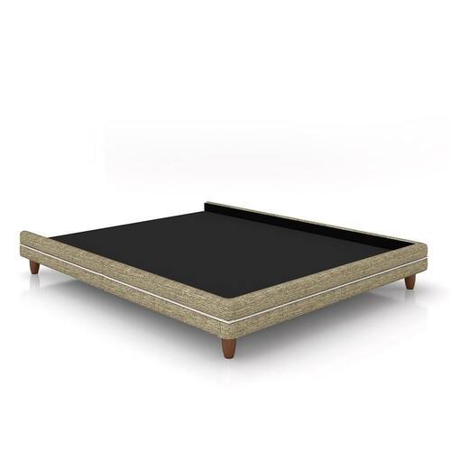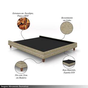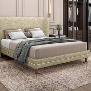 Cama Avulsa Para Colchão Casal Torres Pés Em Madeira Linho Bege G91 - Gran Belo