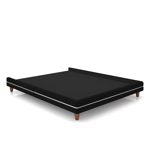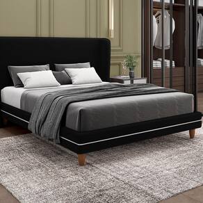 Cama Avulsa Para Colchão Queen Torres Pés Em Madeira Veludo Preto G91 - Gran Belo