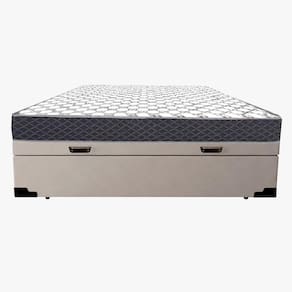 Cama Base Box Baú Casal Reforçado Suede Bege + Colchão Casal Reforçado D33 14x138x188