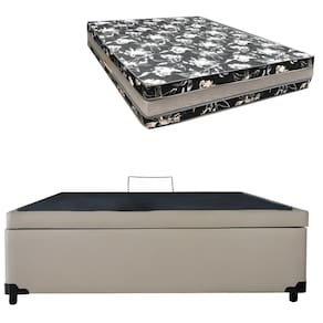 Cama Base Box Baú Casal Super Black Sintético Bege + Colchão Casal Super Black D33 28x138x188