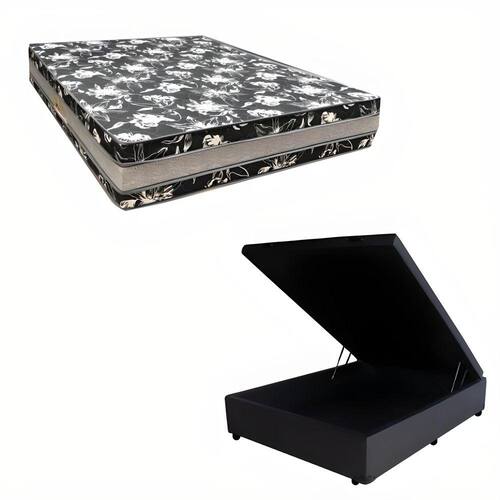 Cama Base Box Baú Casal Super Black Sintético Preto + Colchão Casal Super Black D33 28x138x188