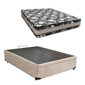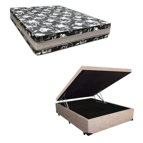 Cama Base Box Baú Casal Super Black Suede Bege + Colchão Casal Super Black D33 28x138x188