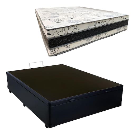 Cama Base Box Baú Casal Super Confort Sintético Preto + Colchão Casal Super Confort D33 28x138x188