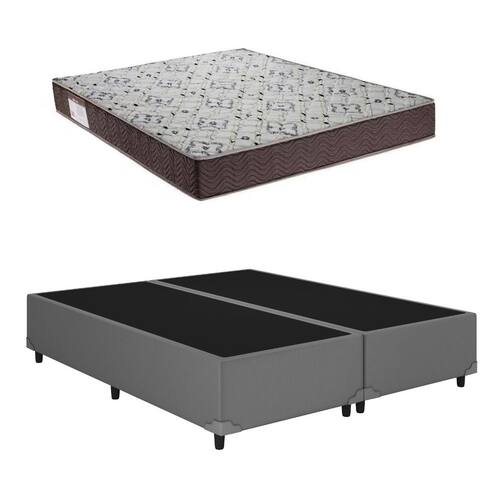 Cama Base Box Queen Bipartido Corino Cinza + Colchão Iso 150 D45 158x198x18 - Ortobom