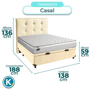 Cama + Bau Bege e Colchão Molas Ensacadas Casal - Hanover Inducol + Cabeceira