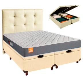 Cama + Bau Blindado e Colchão D23 Queen - Pro Inducol + Cabeceira - Bege