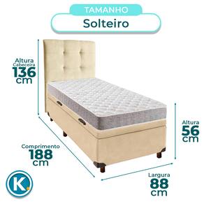 Cama + Bau Blindado e Colchão D23 Solteiro - D23 Inducol + Cabeceira - Bege