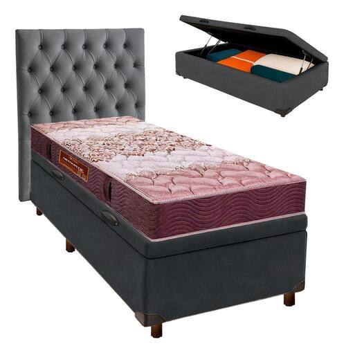 Cama + Bau Blindado E Colchão D26 Solteiro - Ortophedic Sankonfort + Cabeceira Conjunto Solteiro Colchão Ortophedic + Cama Box Bau Colchão solteiro padrão com 25cm de altura, proporcionando mais conforto e presença