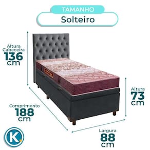 Modelo: Elite Marca: Nature Tamanho: Solteiro Tecido: Veludo Largura: 88cm Comprimento: 188cm Altura: 35cm Altura dos Pés: 7cm Material dos Pés: Madeira Suporte de Peso: 150Kg Peso: 22Kg Garantia: 3 Meses