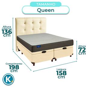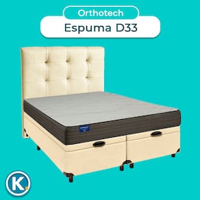 Cama + Bau Blindado e Colchão D33 Queen - Orthotech Inducol + Cabeceira - Bege | Marrom