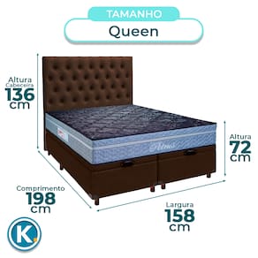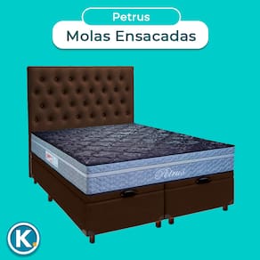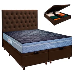 Cama + Bau Blindado e Colchão Molas Ensacadas Queen - Petrus Paropas + Cabeceira - Marrom