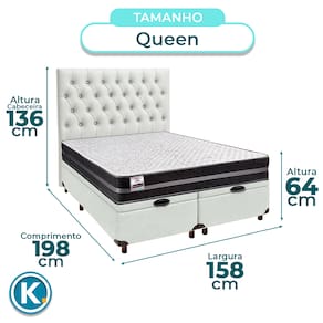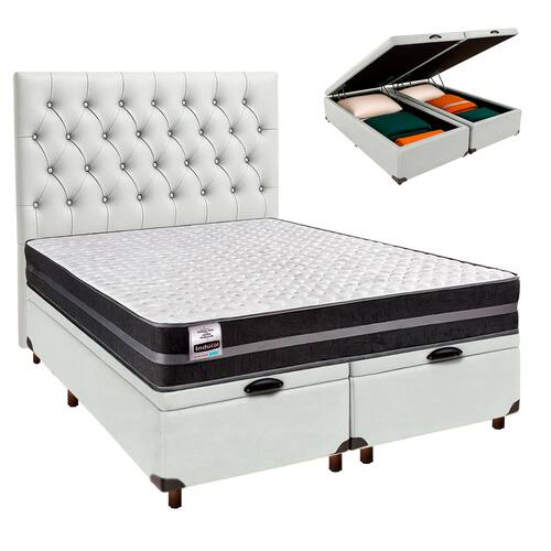 Cama + Bau Blindado e Colchão Molas Ultralastic Queen - Bogota Inducol + Cabeceira - Branco