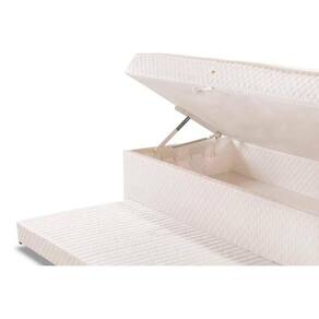 Sobre o Box Conjugado - Box Conjugado Baú Características Gerais da Cama Auxiliar - Pés Fixos de PVC Estofamento Interno da Cama Auxiliar - 28 Forração de Revestimento Superior da Cama Auxiliar - Tecido de Alta Qualidade Tipo de bordado do tecido superior da Cama Auxiliar - Alta Qualidade Tipo de bordado do tecido da lateral da Cama Auxiliar - Matelassê