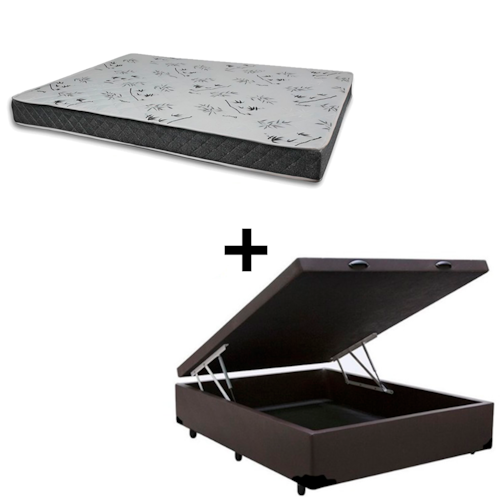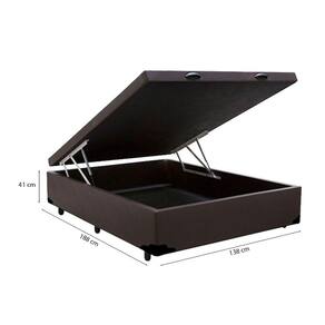 Cama Baú Casal 138 Tecido Sintético Marrom com Colchão Miller Bello Box - 100% Espuma - D33 Cinza 54x138x188
