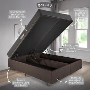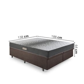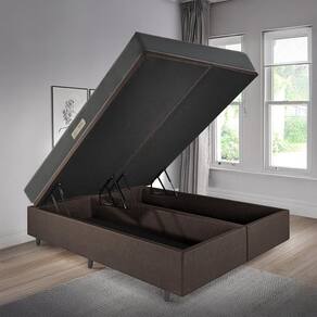 Cama Baú Casal 138x188 Bipartido Courino Linho Marrom com Dual Firm Espuma Ecoflex