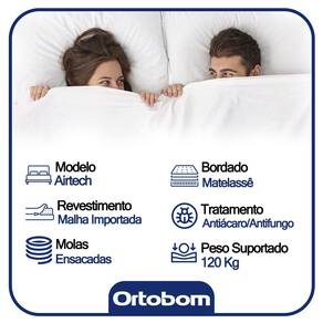 O Colchão De Molas Ensacadas AirTech Ortobom é indicado para pessoas de até 150kg proporcionando conforto firme, o que lhe confere firmeza suficiente para preservar sua coluna durante o sono sem comprometer seu conforto. Fabricado com matérias-primas de alta qualidade e durabilidade, o AirTech Molas Ensacadas Ortobom garante conforto e segurança por muito mais tempo.