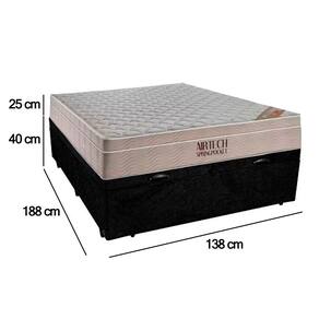 Cama Baú Casal Suede + Colchão Casal Ortobom Airtech Molas Ensacadas 65x138x188 Preto