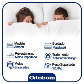 O Colchão De Molas Ensacadas AirTech Ortobom é indicado para pessoas de até 150kg proporcionando conforto firme, o que lhe confere firmeza suficiente para preservar sua coluna durante o sono sem comprometer seu conforto. Fabricado com matérias-primas de alta qualidade e durabilidade, o AirTech Molas Ensacadas Ortobom garante conforto e segurança por muito mais tempo.