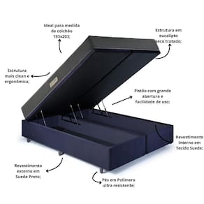 Características estruturais do Baú:- Tecido em Suede:- TNT de alta gramatura;- Costura reta;- Acabamento impecável: sem parafusos a mostra no fundo do baú que é parafusado por baixo;- Pés em Polímero.Cuidados e higienização:O produto é de fácil higienização, pois conta com tratamento impermeabilizante, assim, apenas um pano umedecido com água é suficiente.*Não é indicado o uso de produtos químicos.Características Dual Firm Espuma EcoflexAcabamento:Pillow DuploTecido Plano EstampadoColchão indicado para uso de até 120kg individual.Nível de conforto: Firme