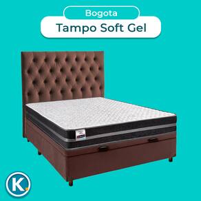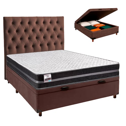 Cama + Bau Marrom e Colchão Molas Ultralastic Casal - Bogota Inducol + Cabeceira