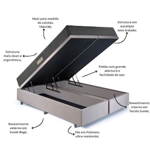 1 Cama Baú Queen Bipartido (158x198x42 cm duas partes de 79x198x42 cm)