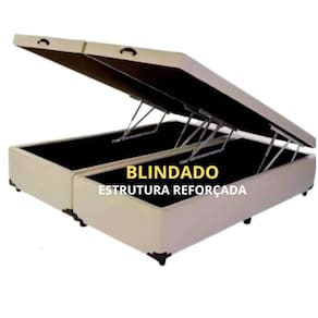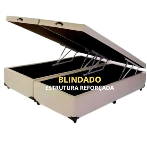 Cama Baú Queen Size Bipartido - Pistão à gás BLINDADO - Bege