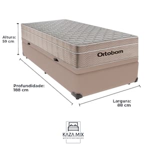 A Base Baú da KazaMix garante conforto e qualidade. A madeira utilizada na produção da Base Box é proveniente de reflorestamentos, o que garante uma matéria-prima renovável e sustentável. Além disso, a base box é revestida com um tecido de alta qualidade, que proporciona um toque suave e agradável.FICHA TÉCNICA DO COLCHÃOModelo: AirtechMarca: OrtobomTamanho: SolteiroDimensões: 88x188x25 (Largura x Comprimento x Altura)Conforto: MacioSistema: Molas EnsacadasPillow: Euro PillowPeso Máximo recomendado: 120 kg (Por pessoa)Proteções: Antiácaro, antialérgico, antifungo, antimofoGarantia: 12 Meses pelo fabricanteFICHA TÉCNICA DA BASEModelo: BaúMarca: KazaMixCor: BegeTamanho: SolteiroDimensões: 88x188x37 (Largura x Comprimento x Altura)Altura dos pés: 5Altura Total: 37Peso Máximo recomendado: 150 kg (Por pessoa)Proteções: Antiácaro, antialérgico, antifungo, antimofoGarantia: 3 Meses pelo fabricanteAtenção: Certifique-se de que o produto passa por elevadores, portas, escadas e corredores, pois não realizamos içamentos ou transporte especial. Não fazemos montagem ou desmontagem de produtos. As cores podem sofrer uma pequena alteração de acordo com a tela Marca: Não Informado