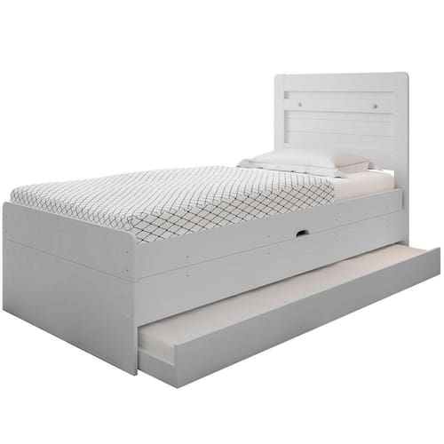 Cama Baú Solteiro Larissa Branco com Aux. comColchões