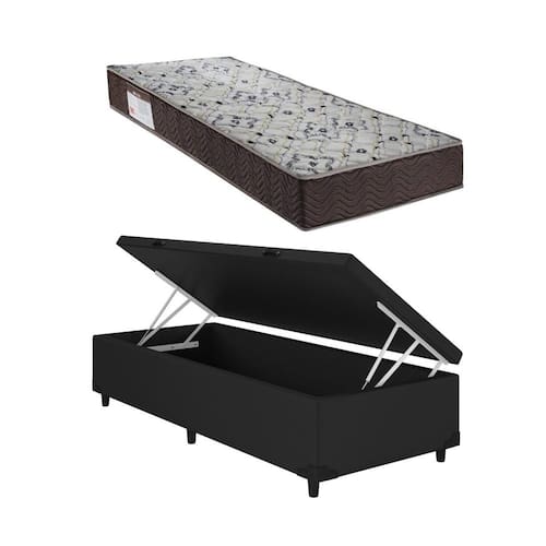 Cama Baú Solteiro Preto Iso 150 D45 88x188 - Ortobom