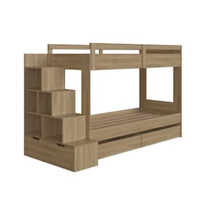 A cama beliche infantil da Completa Móveis. Feita em MDP de alta qualidade, garante durabilidade e resistência. Seu acabamento fosco confere um visual moderno e elegante ao ambiente. Com a escada de 5 nichos, é possível utilizar os espaços para armazenar livros, brinquedos e outros objetos. As 2 gavetas e os 2 gavetões oferecem espaço adicional para guardar roupas e itens pessoais. Com essa cama beliche da Completa Móveis, você otimiza o espaço e proporciona conforto e organização para as crianças. Invista em qualidade e praticidade!