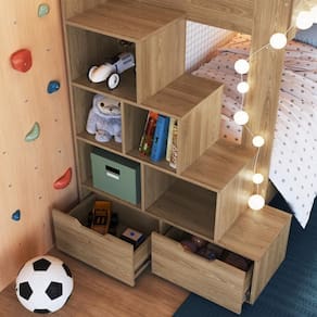 A Cama Beliche Infantil Bicama para Menino e Menina 2,32m com Escada, Nichos e Gavetas com Rodas da Completa Móveis transforma o quarto da criança em um espaço encantador, com escadas laterais que oferecem praticidade na subida e descida dos pequenos, a cama beliche é perfeita para otimizar o espaço. Cada degrau possui nichos integrados, proporcionando solução inteligente para guardar e organizar brinquedos, livros e outros acessórios. Além disso, os dois últimos são acompanhados por gavetas, tornando o produto ainda mais completo. A Cama Beliche da Completa Móveis oferece a flexibilidade de montar a escada lateral tanto do lado direito quanto do lado esquerdo, adaptando-se às necessidades do ambiente.