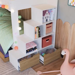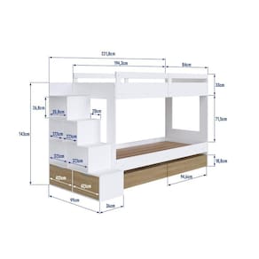 A cama beliche infantil da Completa Móveis é uma opção funcional para o quarto das crianças! Feita em MDP de alta qualidade, garante durabilidade e resistência. Com a escada de 5 nichos e 2 gavetas, é possível utilizar os espaços para armazenar livros, brinquedos e outros objetos. Os 2 gavetões oferecem espaço adicional para guardar roupas e itens pessoais. A combinação dos móveis branco com Aveiro Oak trazendo estilo e funcionalidade ao quarto. Otimize o espaço e proporciona conforto e organização para as crianças. Invista em qualidade e praticidade!