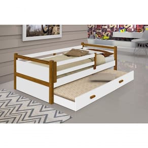 Cama Juvenil Bianca Branco/Mel com Pés em Madeira com Cama Auxiliar