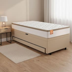 Importante sobre a : A é realizada até a portaria ou porta de entrada do indicado, desde que o acesso seja permitido. Para locais com portaria, a será feita no piso térreo. Não realizamos montagem, desmontagem, por escadas ou içamento. É responsabilidade do cliente verificar se as dimensões do produto são compatíveis com portas, elevadores e corredores. Evite imprevistos: confira todos os detalhes antes de concluir sua compra. MEDIDAS:: [ A ] = 73 cm / 66 cm ( sem pés) [ L ] = 88 cm [ P ] = 188 cm | MEDIDA DA CAMA AUXILIAR:: [ A ] = 17 cm / 10 cm ( Sem Pés ) [ L ] = 75 cm [ P ] = 168 cm | MEDIDA INTERNA DO BAÚ:: [ A ] = 15 cm [ L ] = 74 cm [ P ] = 174 cm | PESO SUPORTADO COLCHÃO:: 130 kg | MARCA BIBOX:: Somopar | PESO SUPORTADO AUXILIAR:: 100 kg | PESO:: 68,3 kg | MODELO:: Cama Bibox com Colchão Real e Baú Solteiro com Cama Auxiliar Conjugada 88x188x73cm Bela | MARCA COLCHÃO:: CBP | REVESTIMENTO SUPERIOR E LATERAL:: Tecido jacquard com tecnologia Softgel, oferecendo toque extremamente macio e agradável à pele. Possui acabamento Euro In na parte superior, que proporciona ainda mais conforto, elegância e uma sensação de maciez contínua | REVESTIMENTO INTERNO:: Estrutura de molas ensacadas individualmente, que suporta até 130kg por pessoa, garantindo conforto e estabiliadade ao dormir | ESPUMA:: Camada de espuma D65 dentro dos padrões ABNT, de alta qualidade, que proporciona conforto na medida certa | ESPUMA AUXILIAR:: Camada de espuma D28 dentro dos padrões ABNT, de alta qualidade, que proporciona conforto na medida certa | DIFERENCIAIS DO COLCHÃO:: Tecnologia Softgel, que potencializa a maciez e o frescor. Revestimento em jacquard, que favorece a ventilação e proporciona acabamento sofisticado,Euro In na parte superior, que proporciona ainda mais conforto | MATERIAL DA ESTRUTURA BIBOX : .: Produzida em madeira de eucalipto de alta resistência, garantindo durabilidade, firmeza e suporte por muito mais tempo | MATERIAL DO PISTÃO:: Molas | MATERIAL DOS PÉS:: PVC | INSTRUÇÕES E CUIDADOS:: Utilizar em seco e arejado, não dobrar, fazer giro quinzenalmente no sentido pés/cabeceira | GARANTIA COLCHÃO :: 12 meses pelo fabricante | QUANTIDADE DE PÉS:: 8 | ITENS INCLUSOS:: 1 Cama box baú conjulgada Solteiro com 1 Cama auxiliar Solteiro e um colchão solteiro 88 cm | GARANTIA BIBOX:: 3 meses | Altura: 73 cm | Comprimento: 188 cm | Largura: 88 cm | Quantidade de caixas de embalagem: 1 | Tamanho: Solteiro | Tipo de enchimento: Espuma | Altura da embalagem: 68 cm | Comprimento da embalagem: 191 cm | Largura da embalagem: 91 cm | Peso da embalagem: 65600 g | Tipo da embalagem: sem embalagem adicional | Cor: Bege