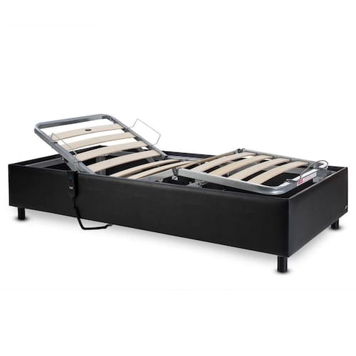 Com 3 pontos de articulação com estrado NERO e quadro estofado em couríssimo preto, o Sommier ajustável Zeus traz o melhor do conforto, para ser traduzido em uma noite de sono profundo e confortável.