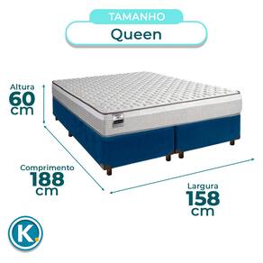 Cama Box Azul Queen + Colchão Molas Ensacadas Hanover Inducol