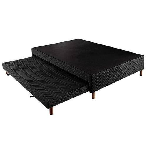 Cama Box Base c/ Auxiliar Casal Sommier Rústico Bordado Black (138x188x30) - Paropas