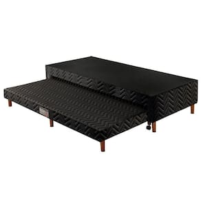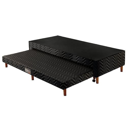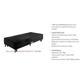 Cama Box Base c/Auxiliar Solteiro Universal Tecido Bordado Black (88x188x30) - Paropas