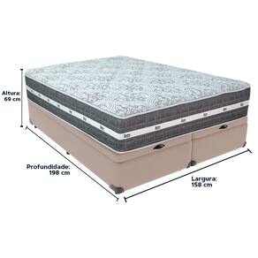 Cama Box Baú Bege e Colchão Black Graphite Molas Ensacadas Queen 158x198X32 Anjos