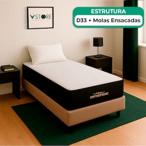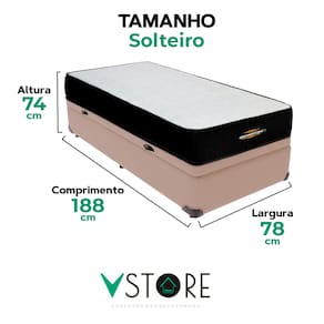 A tecnologia que a sua casa merece está na V-Store! O Conjunto Colchão Orthopedic + Base Box Baú Bravus da V-Store une conforto e funcionalidade. O colchão, com espuma D33 e suporte extra firme, oferece alinhamento ideal e proteção contra ácaros, alergias e fungos. A base box baú, com estrutura resistente e espaço interno, combina organização e estilo, otimizando seu dormitório com praticidade e elegância.Característica Do Colchão: Modelo: OrthopedicMarca: V-StoreTamanho: SolteiroDimensões: 78x30x188 (Largura x Altura x Comprimento)Conforto: Extra FirmeSistema: EspumaPillow: Não se aplicaPeso Máximo recomendado: 110 kg (Por pessoa)Proteções: Antiácaro, antialérgico, antifungo, antimofoGarantia: 12 Meses (Espuma)Característica Da Base: Marca: V-StoreModelo: BravusCor do Box: BegeTamanho: SolteiroDimensões: 78x44x188 (Largura x Altura x Comprimento)Estrutura: MadeiraPeso máximo recomendado: 150 kg (Por Pessoa)Altura do Box: 38 cmAltura dos Pés: 6 cmAltura total: 44 cmGarantia: 12 Meses (Estrutura) / 3 meses (Tecido)Selo Ecologicamente CorretoAtenção:- Antes de finalizar sua compra, recomendamos que verifique se as dimensões do produto são adequadas para serem transportadas pelos elevadores, portas, escadas e corredores de sua residência. Ressaltamos que não nos responsabilizamos pelo transporte do produto por meios específicos, como escadas, guinchos ou içamentos.- É possível que hajam leves variações de cor de acordo com o dispositivo que está sendo utilizado como smartphones, computadores, monitores e outros.