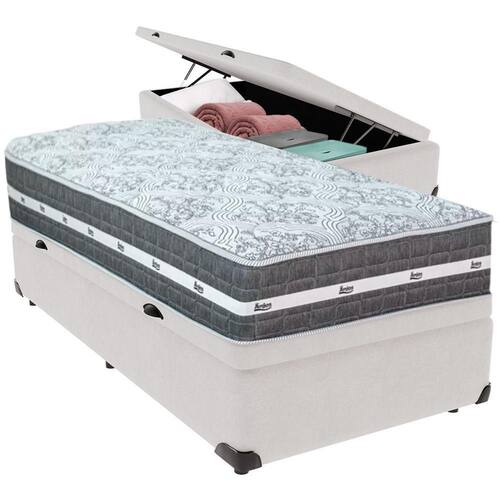 Com um baú generoso, ela oferece a solução perfeita para armazenar travesseiros extras, cobertores, malas e muito mais. Além disso, sua estrutura robusta suporta até 150 kg por pessoa, garantindo a sustentação ideal para o seu colchão e prolongando sua vida útil.